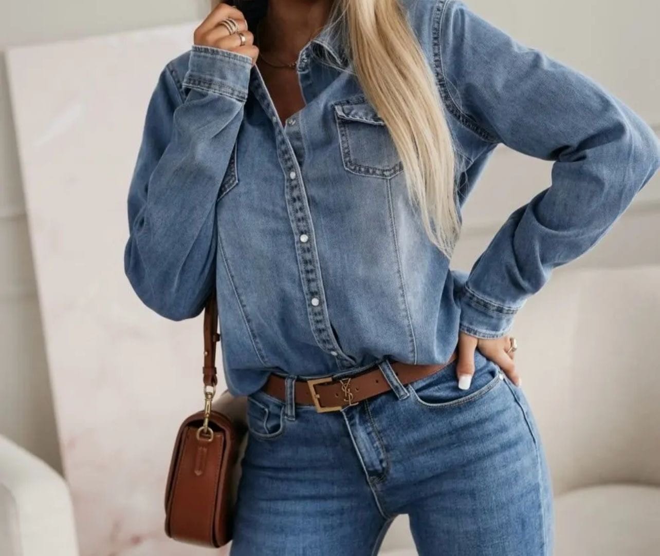 Denim blouse, dames (Exl)