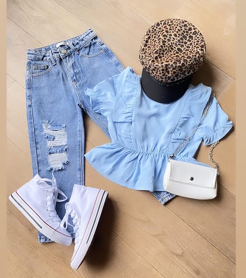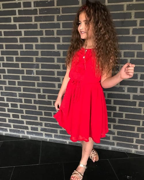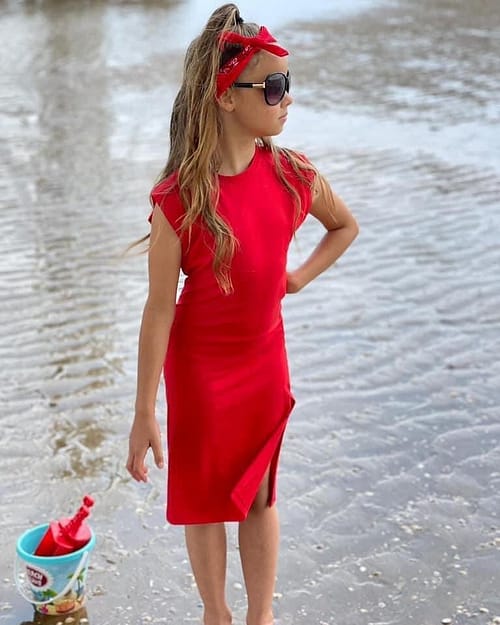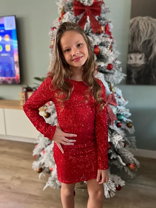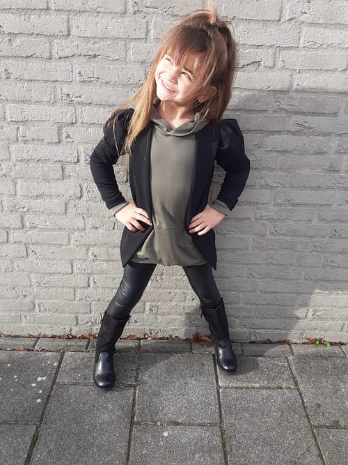Groen = Petrol groen Ons model is 99 cm en draagt een 98/104, Ons andere model is 1.21 cm en draagt een 122/128
