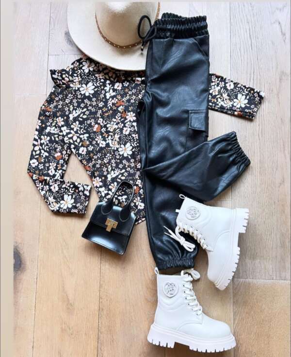 Stretchy top, black flower 💗